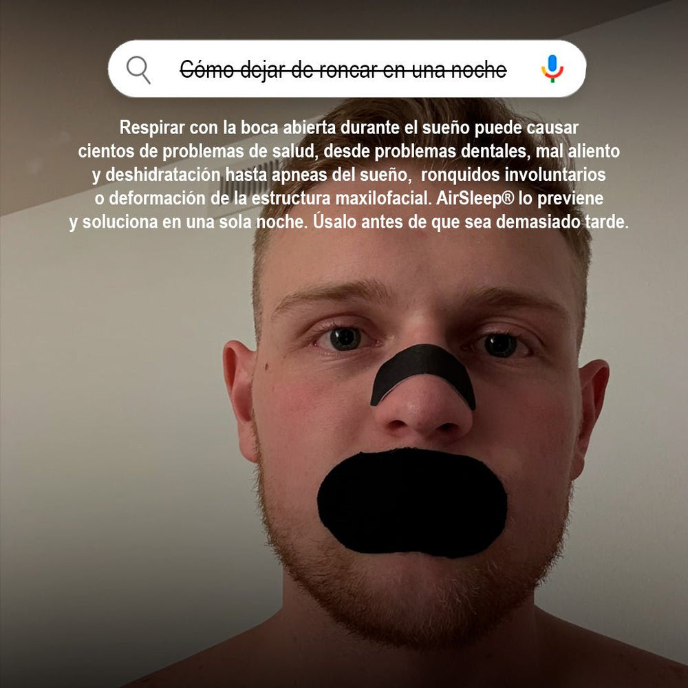 Al mejorar la respiración nasal y bloquear parcialmente dormir con la boca abierta, reducimos ronquidos, boca seca y el desagradable mal aliento al despertar.