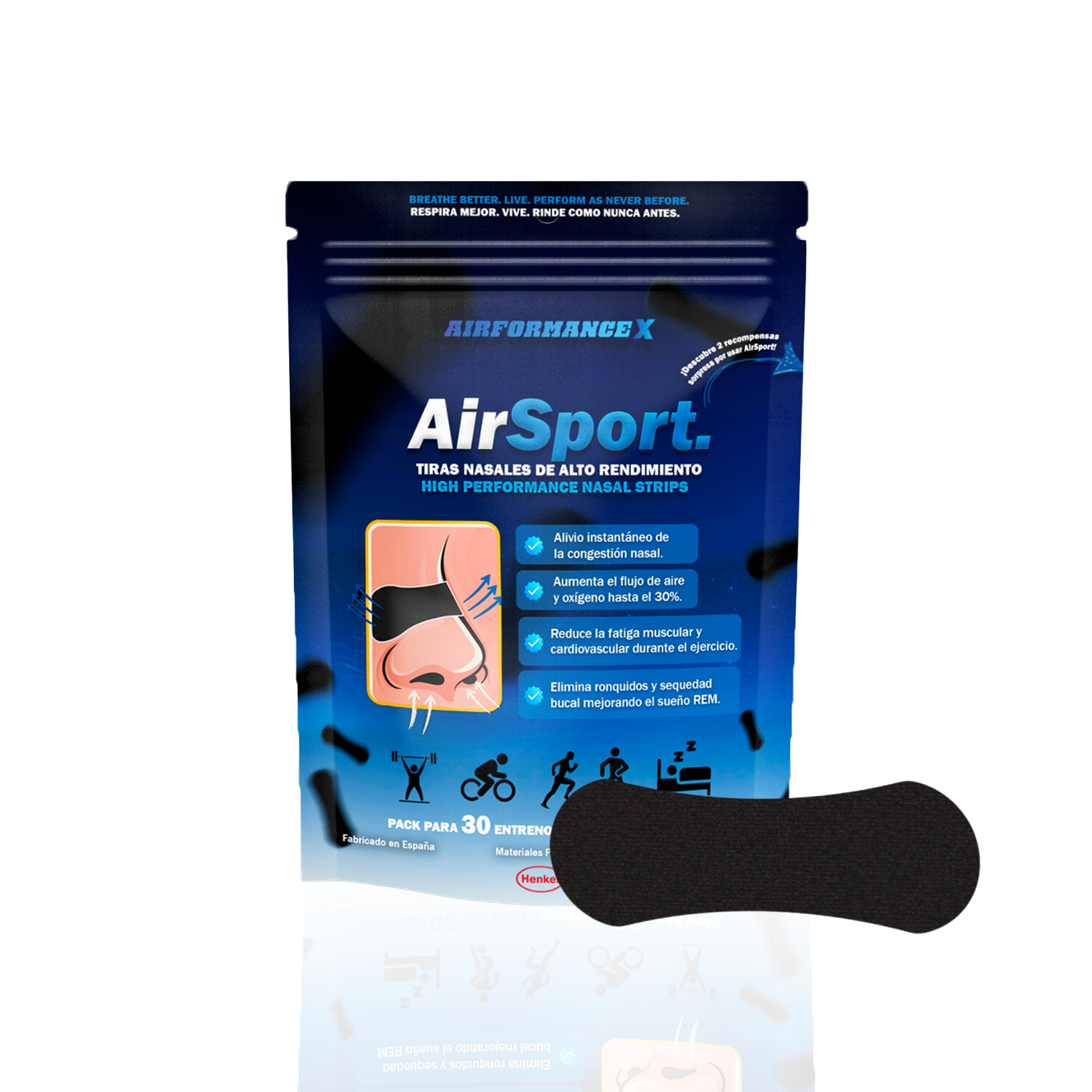 Respira mejor. Duerme mejor. Rinde mejor. No es magia, son las tiras nasales de AirFormanceX.
