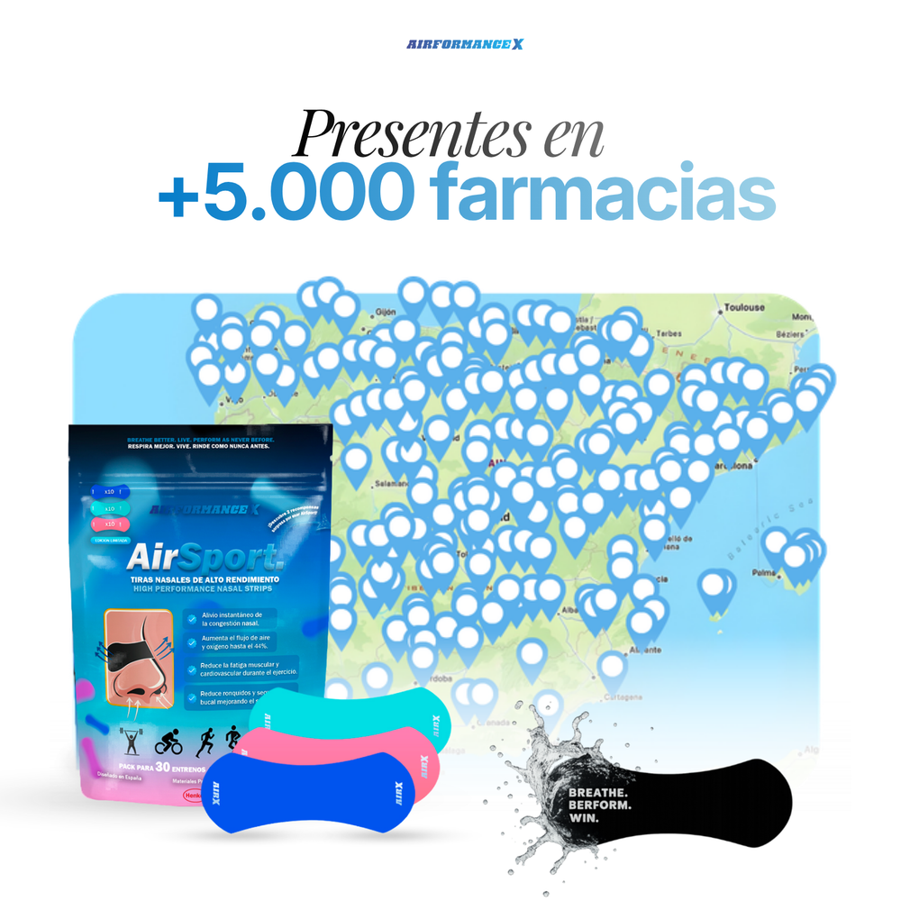 AirSport® no vive solo en anuncios. Está presente en más de 5.000 farmacias en España, utilizada por miles de deportistas y recomendada por profesionales de la salud respiratoria.